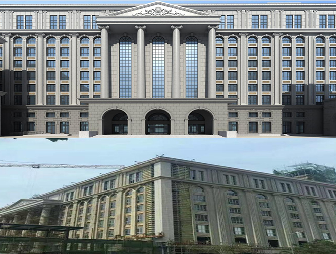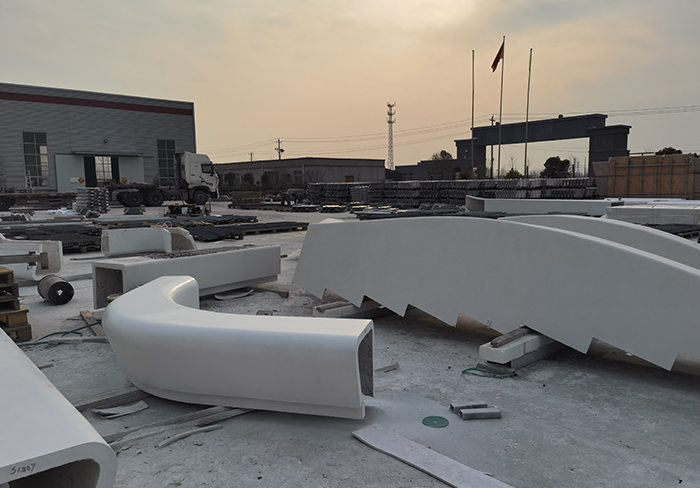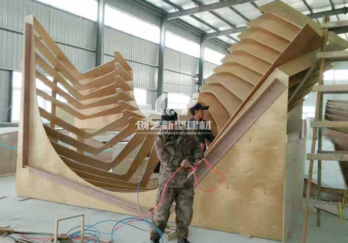 采用機械噴制加工,高溫養護成型,大型構件采用鋼骨架節點方式